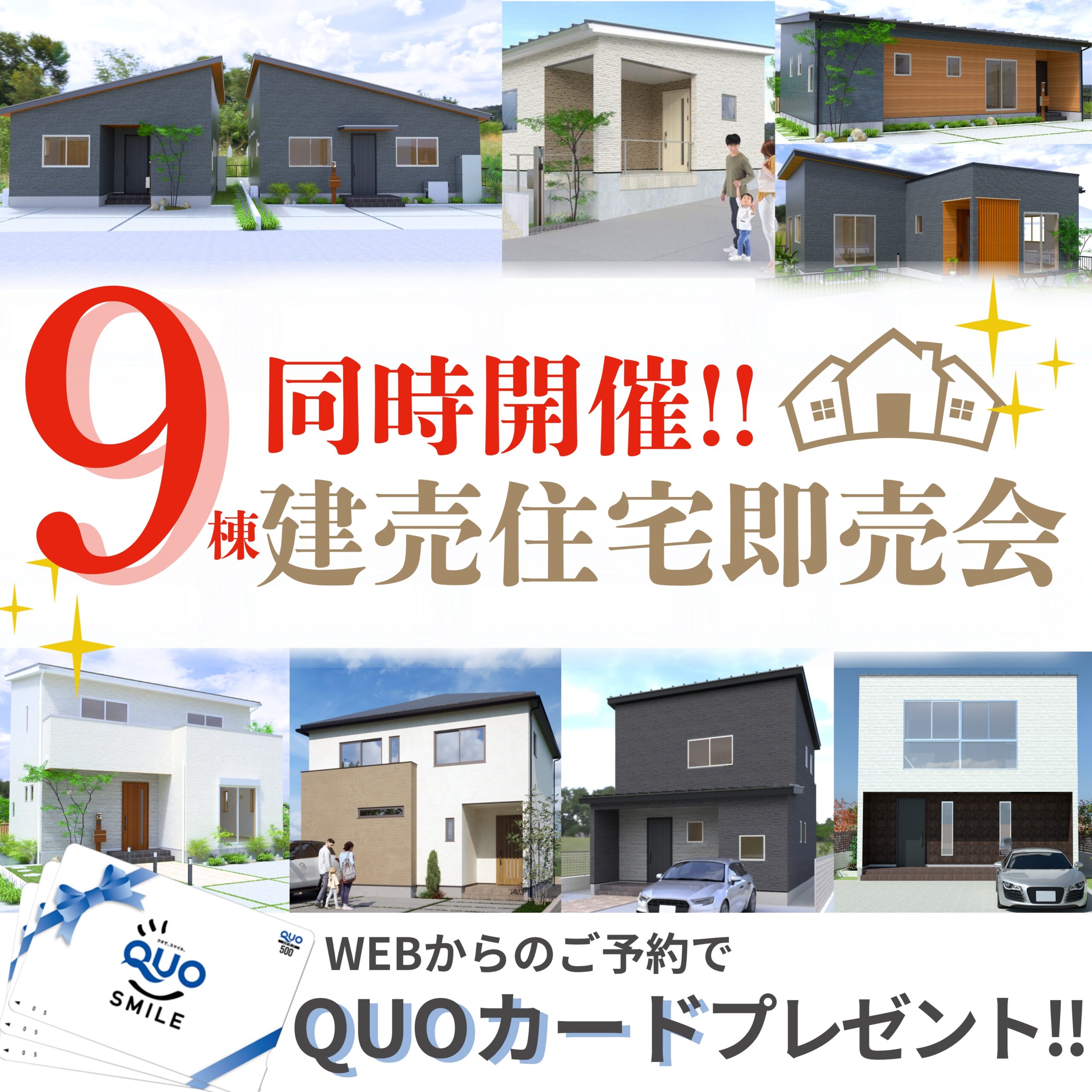 🏡建売住宅9棟 見比べ見学会 開催中! \気に入ったら、そのまま購入OK!/ いま、完成済みの建売住宅を9棟同時に公開中✨ デザインや間取り、立地などをその場で比べながら、 自分たちにぴったりの一棟を見つけてみませんか? 💡もちろん、即購入可能! 「家は欲しいけど建築の打ち合わせは面倒…」 という方にもおすすめです♪ 📞お電話でのご相談・お問い合わせもお気軽にどうぞ!
