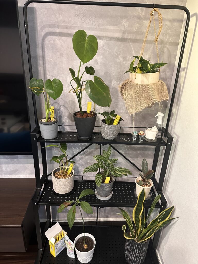 最近、観葉植物をラックにずら~っと並べてみたよ🪴