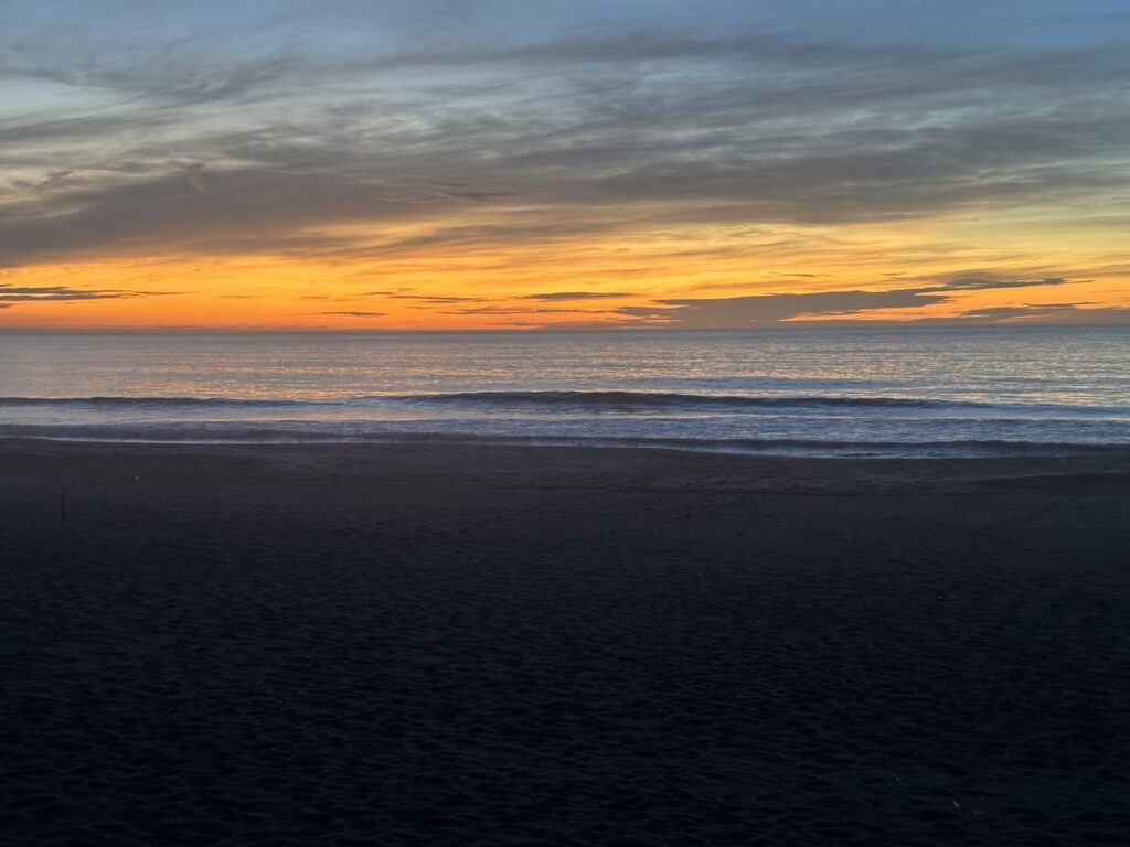 ちょうど夕日が沈むタイミングで、空も海もいい感じにオレンジ色🧡