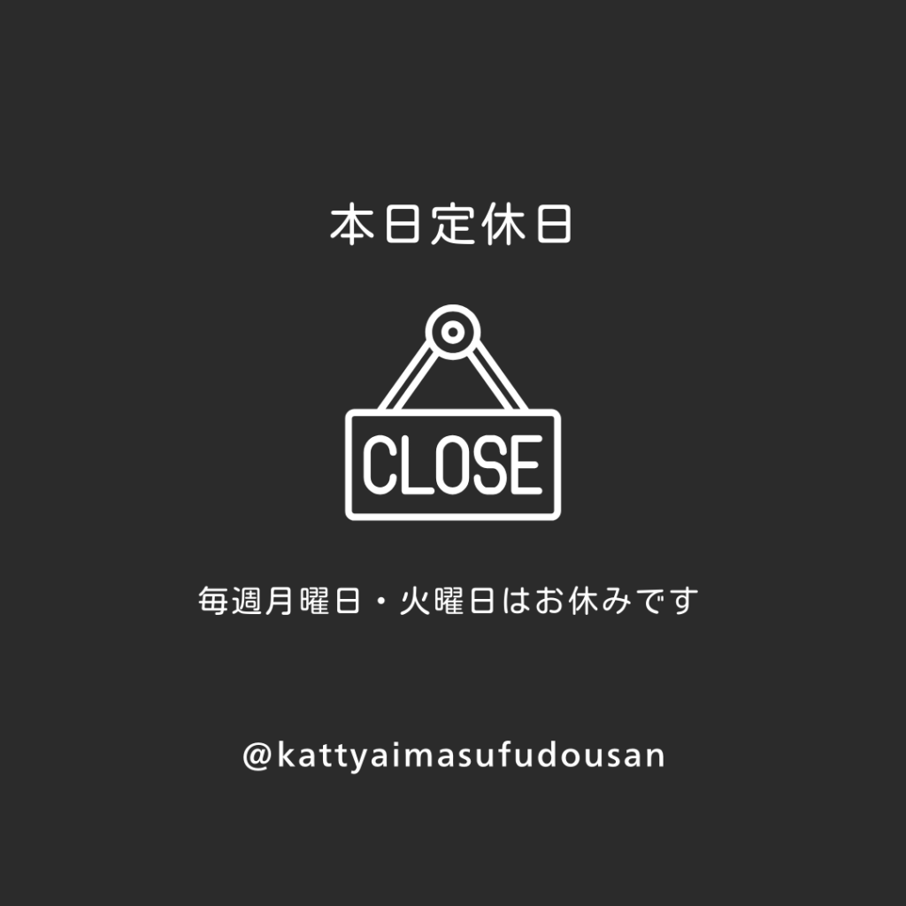 毎週月曜日・火曜日は定休日です。