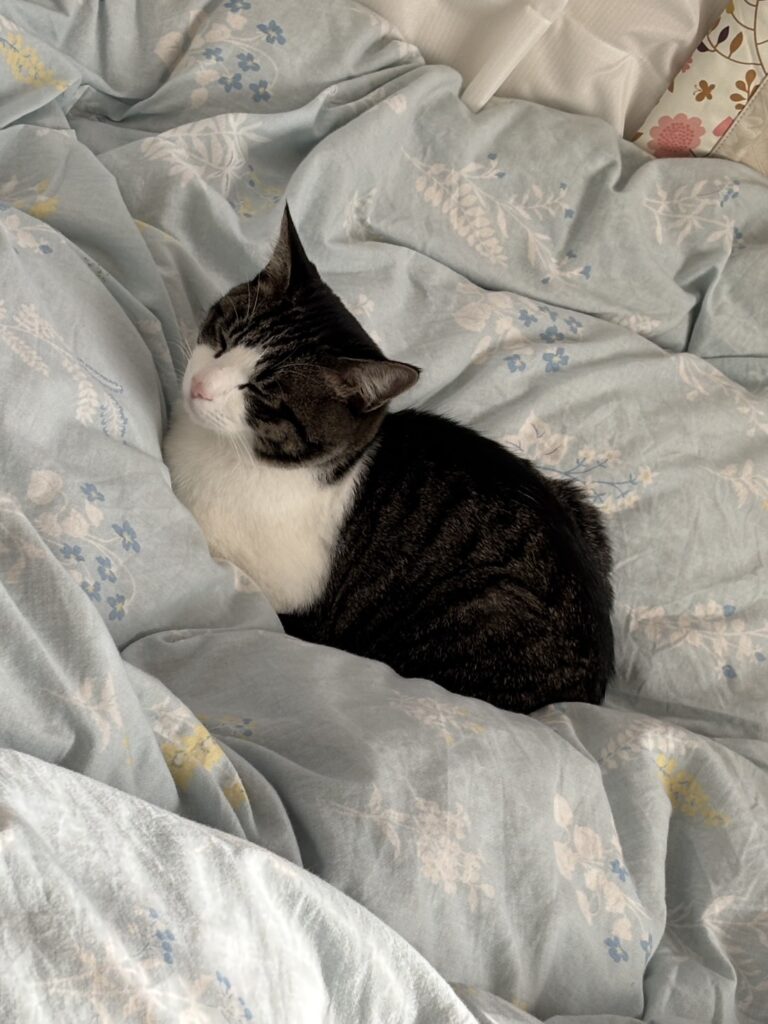 妹が飼ってるねこがベッドをしっかり占領してました。