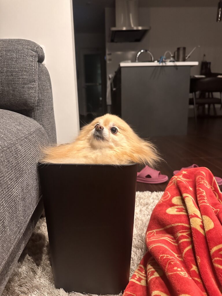 ゴミ箱に挟まってました😂😂